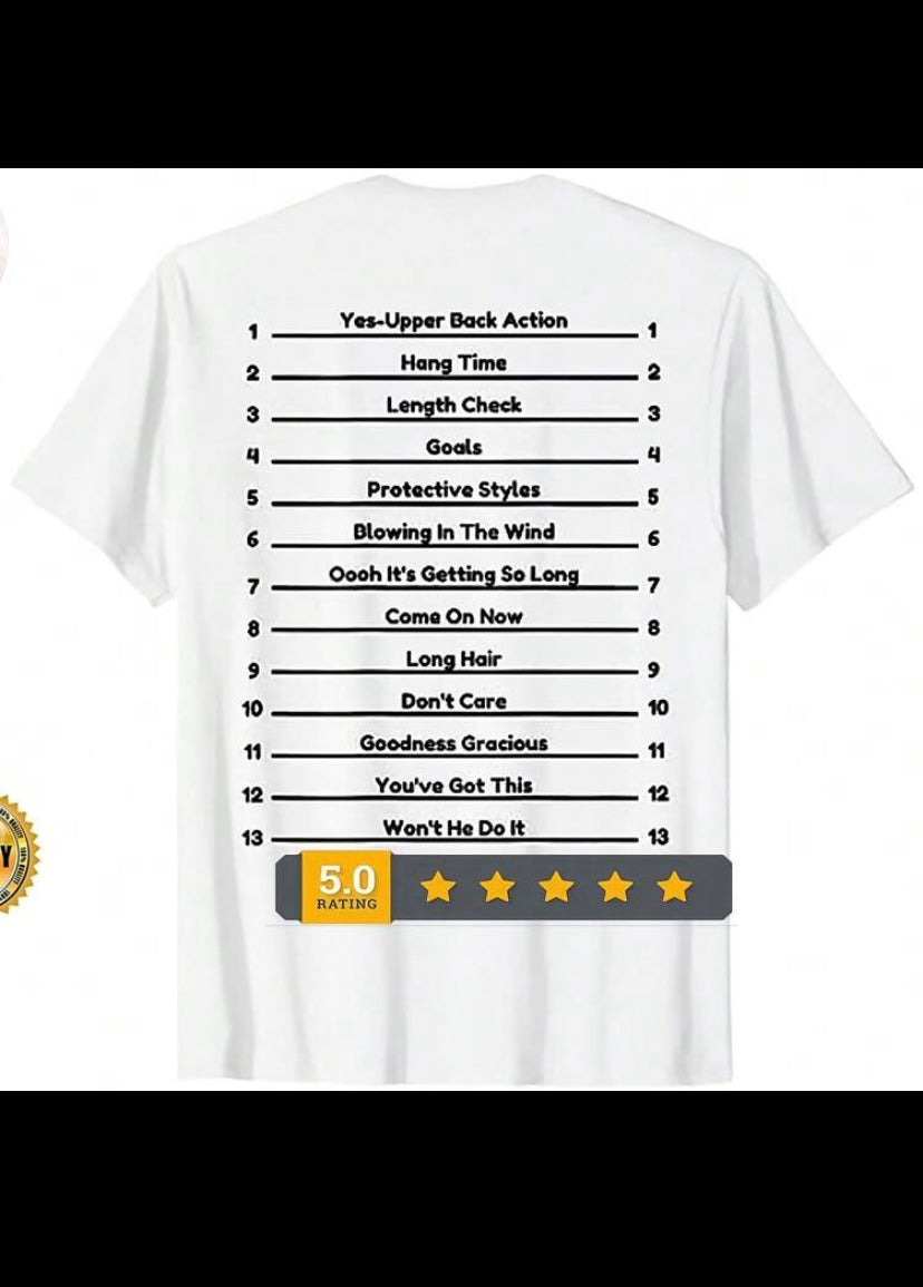 Say goodbye to rulers and awkward mirror angles! This Inch Check Tee is like a built-in progress report for your gorgeous hair. It's soft, comfy, and lets you effortlessly see your length from collarbone to hip. Get yours and make every hair flip a measurement flex!